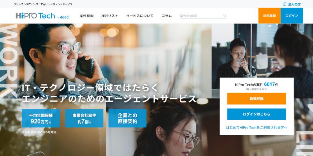 出典:フリーランスITエンジニア向けエージェントサービス|HiPro Tech(ハイプロテック)